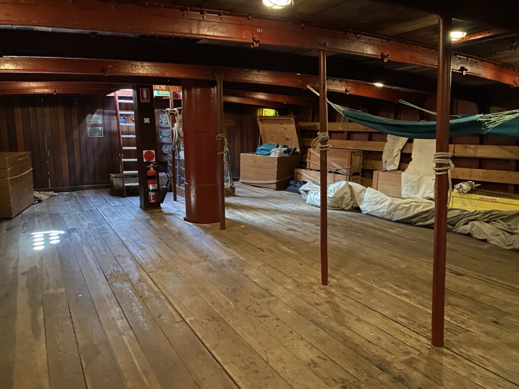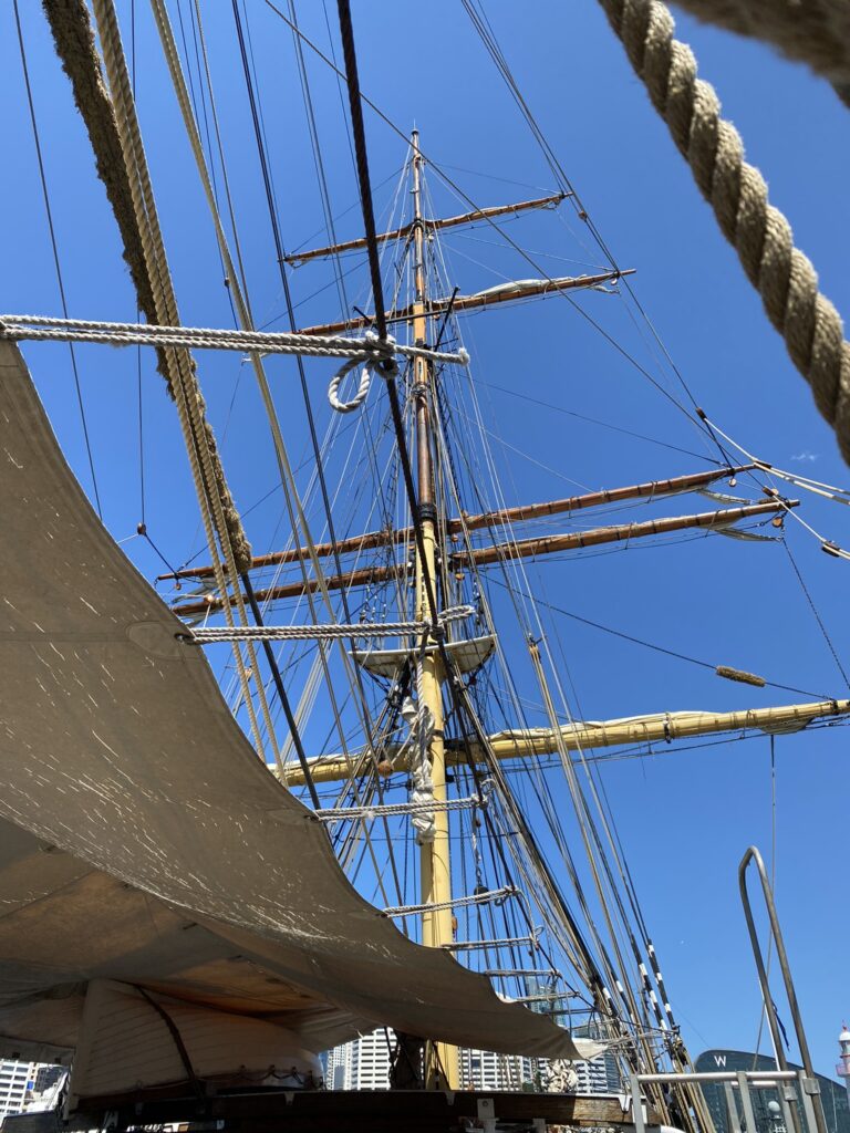 Once the sails were up, the whole ship became an open playground. You could wander freely from bow to stern, climb up and peer out over the railings, or stand quietly watching the city slide by. Sailing through Sydney Harbour like that gives you a real sense of history – imagining how the harbour must have felt long before glass towers and motor engines dominated the view.
